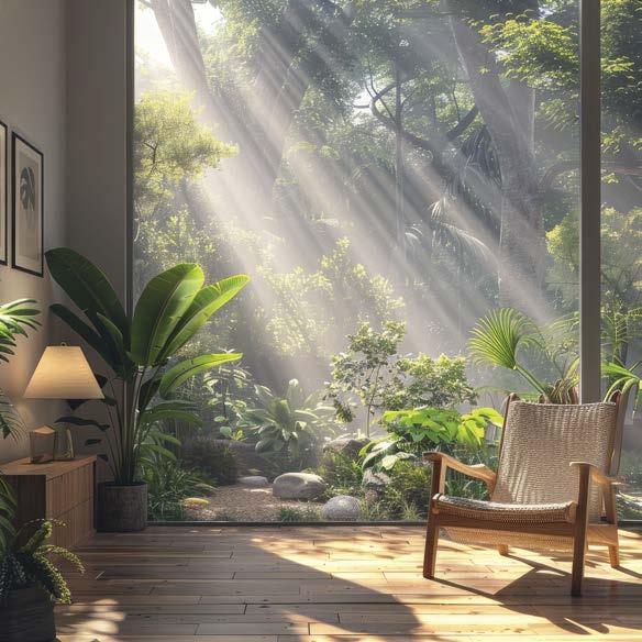 Timers and solar options: Set lights on timers to conserve power, or try solarpowered string lights for outdoor décor. Candle glow: Beeswax or soy candles in recycled glass jars create a cosy, natural glow without synthetic fumes.