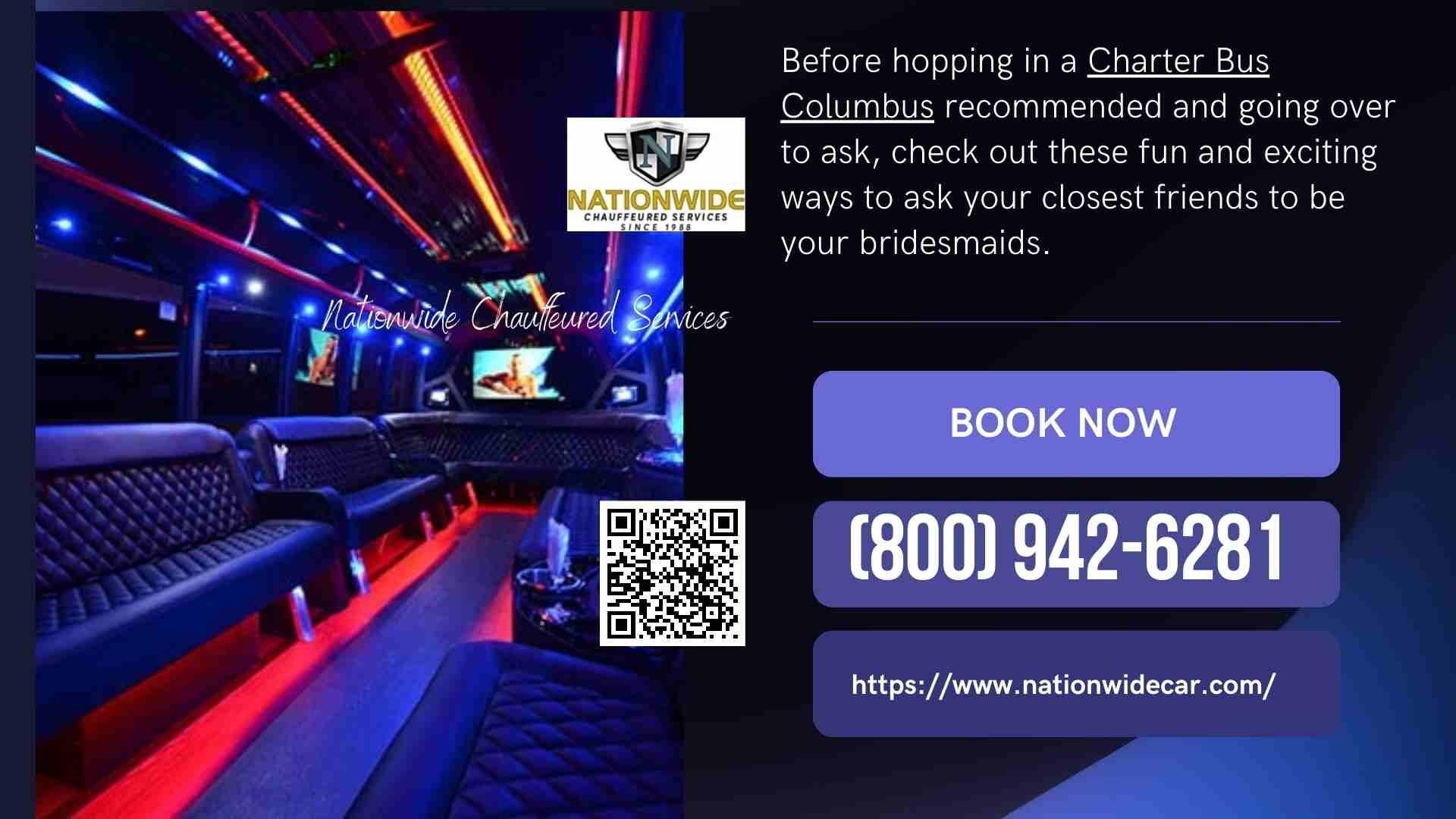 Party Bus Rental Columbus Company is Providing Fun and Exciting Ways to Ask Your Friend to Be Your Bridesmaid. If you are looking for some great ways to ask your best friend to be your maid of honor or groomsmen, then we have some wonderful ideas for you! Asking a close friend to be there by your side at your wedding should be a meaningful moment, like grabbing a Columbus Party Bus Rental —here’s how! Before hopping in a Charter Bus Columbus recommended and going over to ask, check out these fun and exciting ways to ask your closest friends to be your bridesmaids. Look on Etsy for personalized jewelry. Maybe a bracelet that says, “Be My Bridesmaid,” or “Best Bridesmaids Forever.” Ask them with a note inside a balloon they must pop. Grab a Party Bus Columbus loves and ask them mid-dance! Give them a customized gift, like a wineglass or robe. Call us Now at 800-942-6281