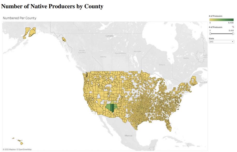 Note: The Navajo region expands throughout Arizona and New Mexico, with over 27,800 Native producers represented between the two states.