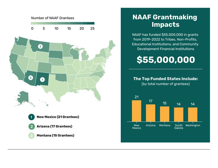 In 2022, NAAF invested $12 million in 49 grant projects impacting more than 160,000 Native producers across 169 tribal nations and 23 grant projects serving more than 8,000 Native youth across 81 tribal nations.