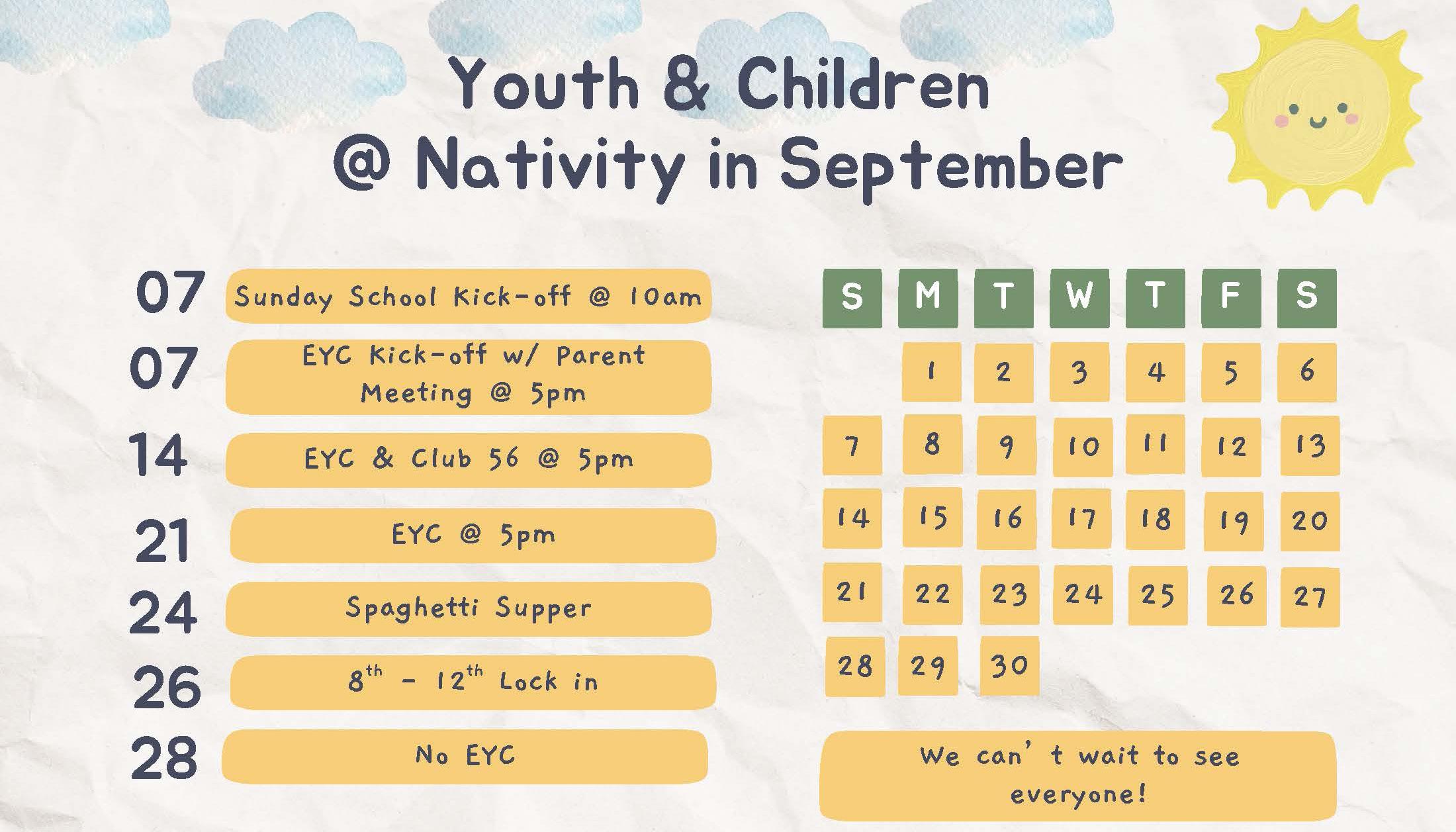Nativity has an enriching and lively sacred music program lined up this Fall! Take note of these events, and let our new Music Director Aaron Tan know if you would like to get involved! atan@nativity-hsv.org, (734) 707-7143. You can keep up to date on all the musical happenings at Nativity on the music page, www.nativity-hsv.org/music-ministry
