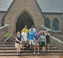 Many thanks to these volunteers who cleaned sidewalks, parking lots and spread mulch. From left to right: Rhonwyn Watson, Chris Singer, Mike Knight, Charles Ray, Carter Wells, Alex Jones, Robert Rodgers, Elizabeth Knight, Emily Rodgers. Not pictured Carolyn Brooks, Joe Cooper, and Frederick Lanier.