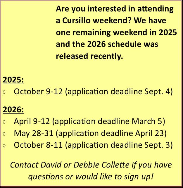 If you have questions about the program before our meeting, please contact Ted Briggs (ted.l.briggs@gmail. com) or Deacon Bob Serio (rserio001@gmail.com).