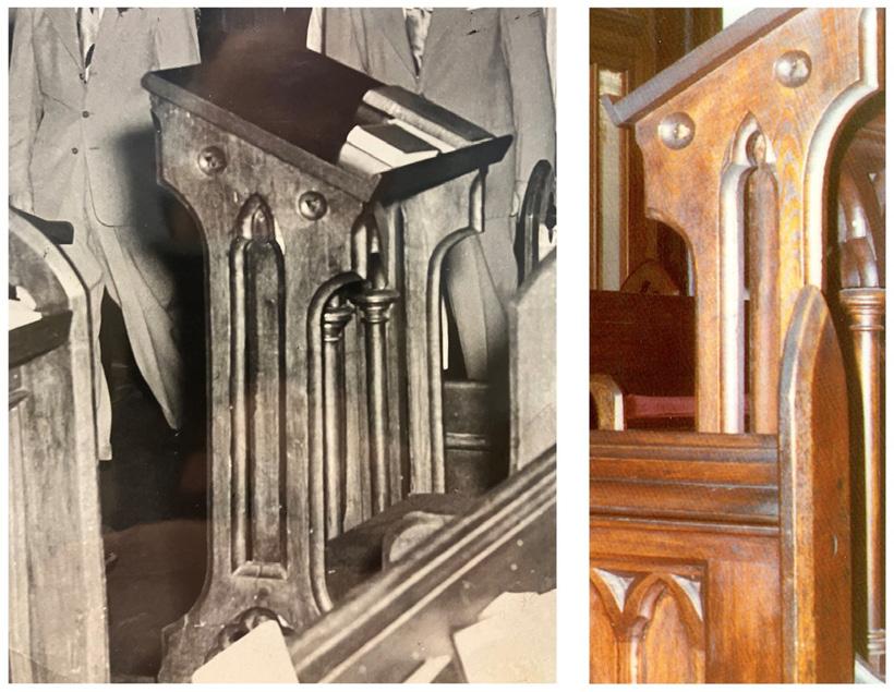 Litany Desk constructed of salvaged parts from the original (1859) pulpit and used until replaced with a matching pair of litany desks. It would be sad to have lost these original elements of our church. If you know what has become of this desk, please contact Paul Whitehouse. (whitehousegiles@comcast.net)