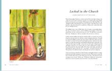 We invited local artists in the congregation to join the effort and the results were stunning. Some pieces directly illustrate stories and memories, such as the “Consecrated Bear” painted by June Denson. Others reflect the unique themes of each section, especially Celebrations. One artist, Denise Schiber, was commissioned to paint a charming scene of Greene Street Market Day for the Farm to Table section.