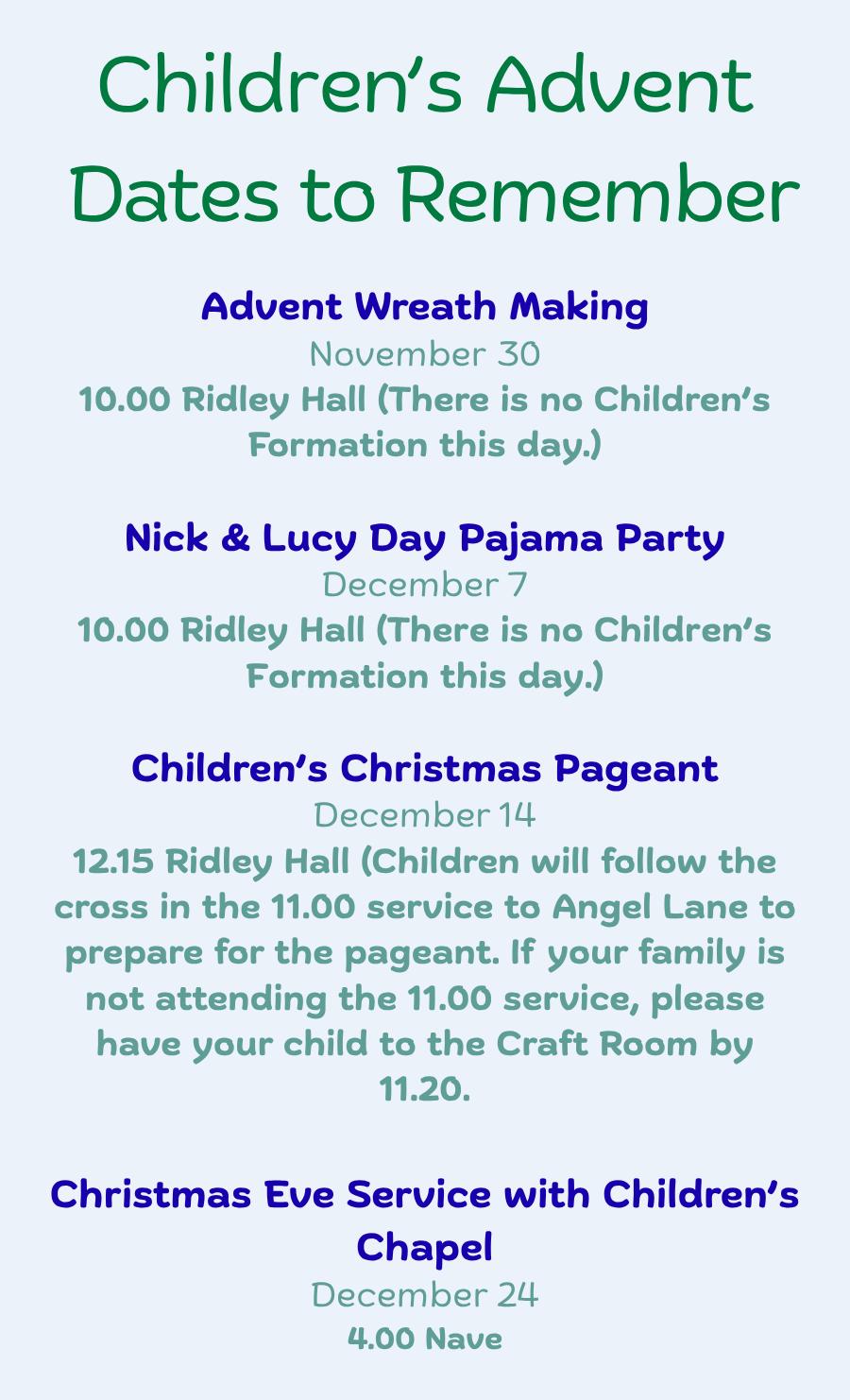 Christmas Flower Dedications are open! Flower dedications are $20 each and may be submitted by clicking HERE, or by filling out a form. The forms will be located in the Banister room on the table next to the drink cooler, the table next to the Chapel interior entrance or the foyer of the Nave. The deadline to submit a Christmas Flower Dedication is December 14th.