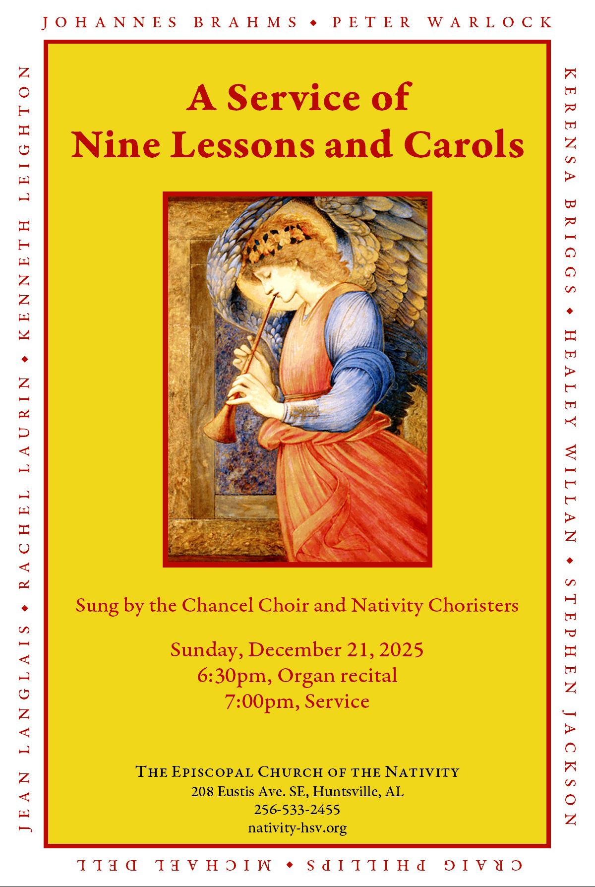 Do you enjoy singing but don’t feel like you can commit to a regular weeknight rehearsal? Consider joining the new Parish Choir which will sing at the 8:45am service starting January 25, 2026. The repertoire will be more straightforward and the only rehearsal will be at 8am, immediately before the service. Please contact Director of Music Aaron Tan if you are interested: atan@nativity-hsv.org.