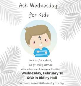 6:30pm, Ash Wednesday for Kids in Ridley Hall