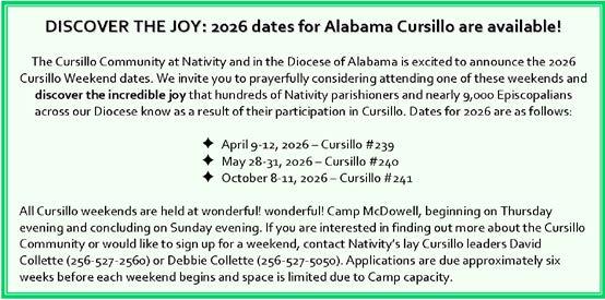 The Reverend Rosie Veal Eby Priest Associate rvealeby@nativity-hsv.org