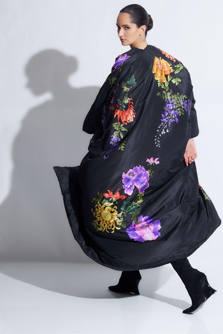 Gold Plated Brass Infinity Clip Earrings Q81501 $350 Couture Velvet Cocoon Embroidered Topper Q49009 $2,500 on right: Velvet Scarf Q41009 $1,495 Couture Silk Taffeta Cocoon Applique Topper Q49130 $4,500 Velvet Short Cowl Gown Q43009 $695 Buffalo Horn Infinity Clip Earrings Q81529 $225 Natsu Stretch Suede Over the Knee Wedge Boot NT49300 $535 Kairaku Garden Charmeuse Silk Scarf Q41013 $995 Couture Silk Taffeta Applique Topper Q49030 $3,800