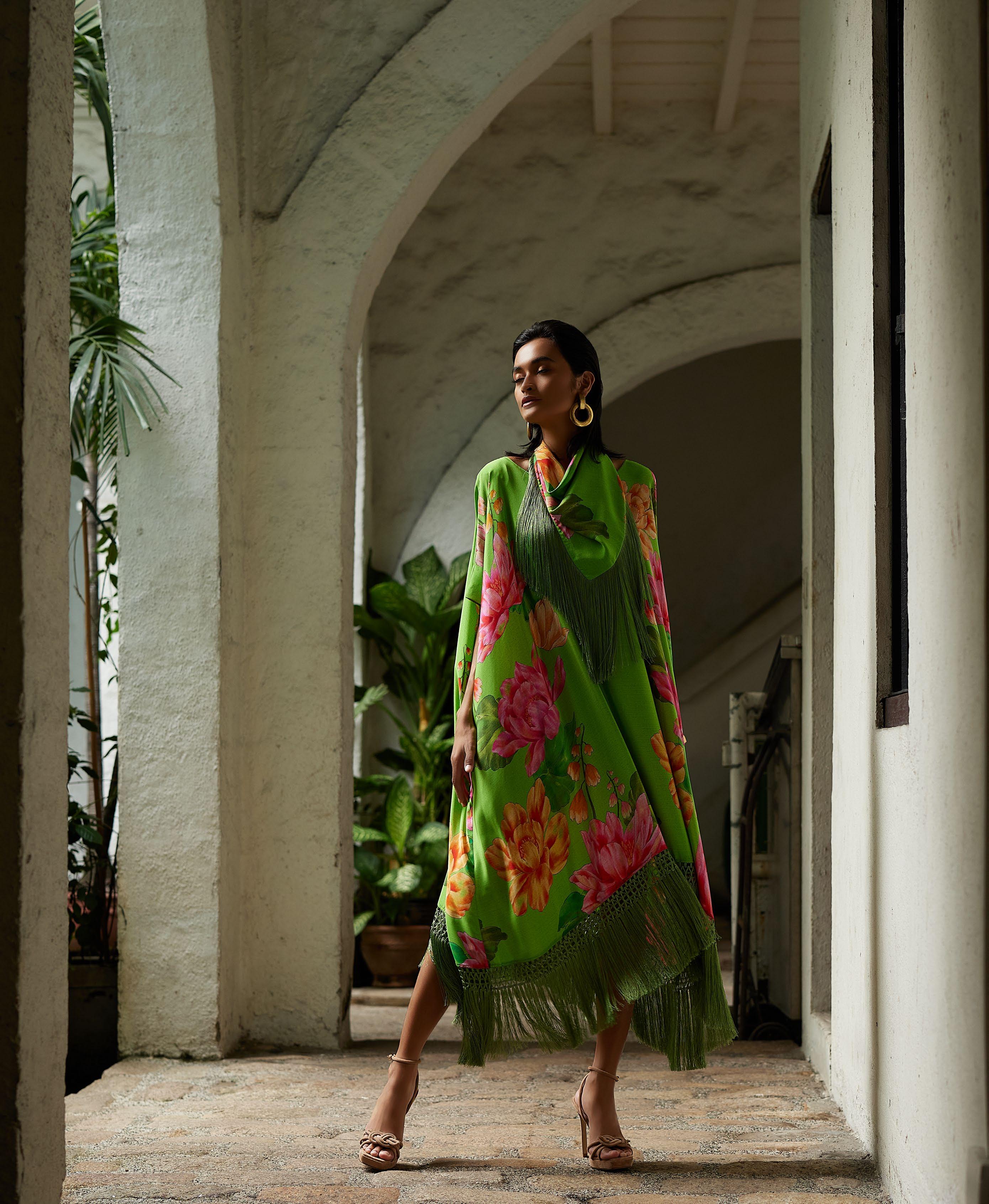 Hanabi Fringe Silk Caftan R40116 $1,200