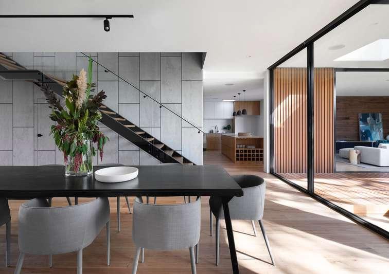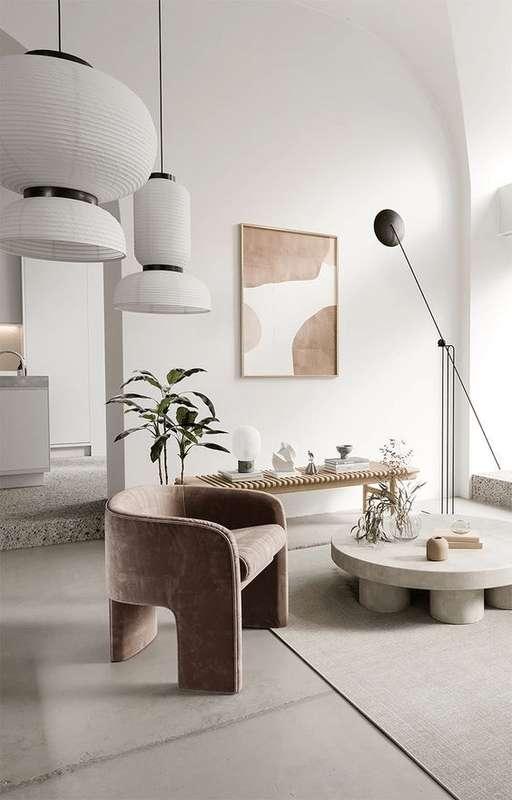 Se caracteriza por la simplicidad, líneas limpias y una paleta monocromática con el color utilizado como acento. Por lo general, combina un plano de planta abierto, mucha luz y muebles funcionales, y se centra en la forma, el color y la textura de solo un puñado de elementos esenciales.