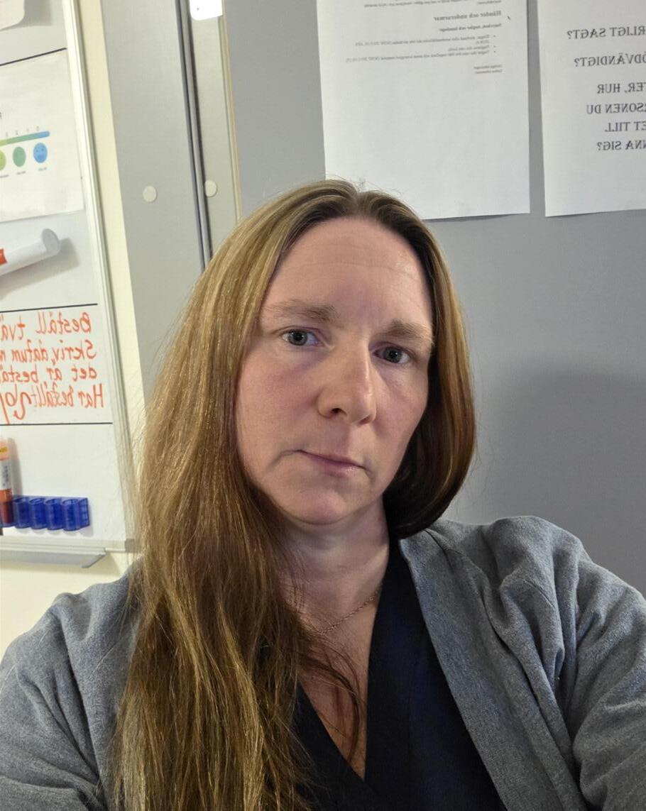 En ung kille står lite avsides, ser vilsen ut. Lena och en kollega går fram och frågar hur det är.