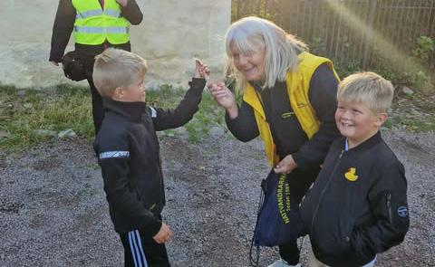 Några veckor senare var det dags för premiärturen. Två grupper, med totalt sju nattvandrare, gav sig ut i Flobykvällen. För många av de nya deltagarna var det första gången och de kände hur stark effekten blir genom att bara på plats — synlig, närvarande och redo att lyssna. Det var början på något som kan växa till en stadigt återkommande nattvandring i Floby, driven av gemenskap och omtanke.