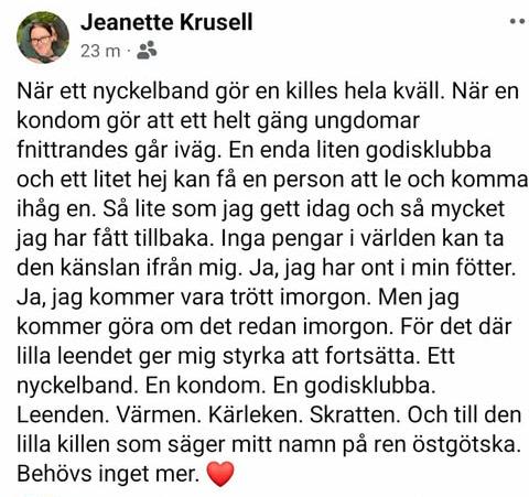 Jag är så stolt över att finnas med i nattvandrarna. En del av det civila samhället som tar sitt ansvar. Som inte bara sitter och förfasar sig över det som händer. Vi finns där ute. Blir viktiga vuxna för dem som behöver det.