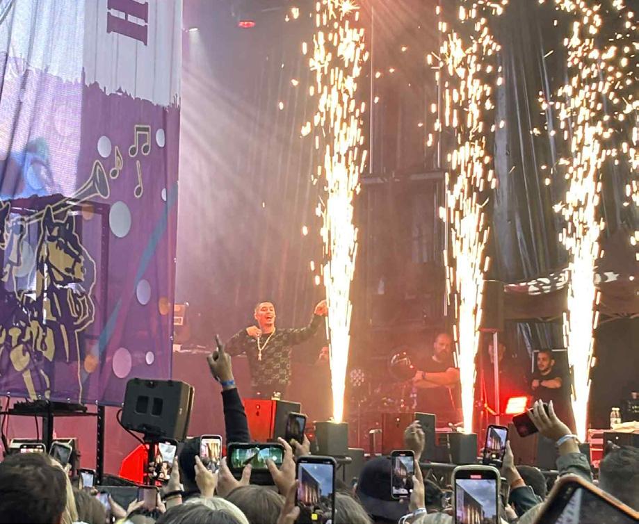 Från scenen hörs en Angus tribut till AC/DC – ”Highway to Hell” – och publiken sjunger med i varje ord. Ljusstrålar sveper över himlen och får fästningsmuren att glöda.