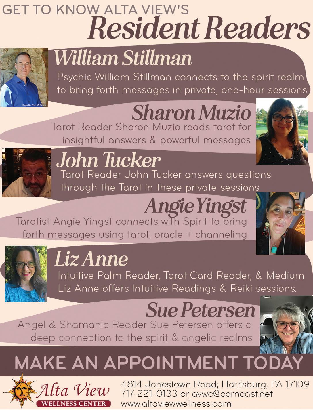 Cost is $33. Location: 5A Harrisburg Pike, Dillsburg. For more information, call 717-943-4833, email Angel@FullColorlLiving.org or Keane@FullColorlLiving. org or visit ReweavingBalance.earth. See listing, page 30.