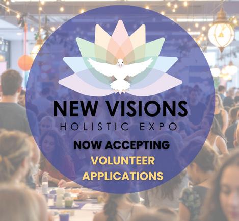 Organizer Kara Lovehart says, “The New Visions Holistic Expo isn’t just another event, it’s a regional hub for wellness, connection and conscious living. With holistic wellness practices on the rise and more people seeking meaningful, purpose-driven ways to give back, this volunteer opportunity offers readers a chance to be of service to a movement that promotes healing, self-awareness and community well-being; gain behindthe-scenes access to one of the largest and longest running holistic expos in the region; build friendships and networks with other wellness-minded individuals; and support local tourism and small businesses in a growing industry that reflects their personal values.”