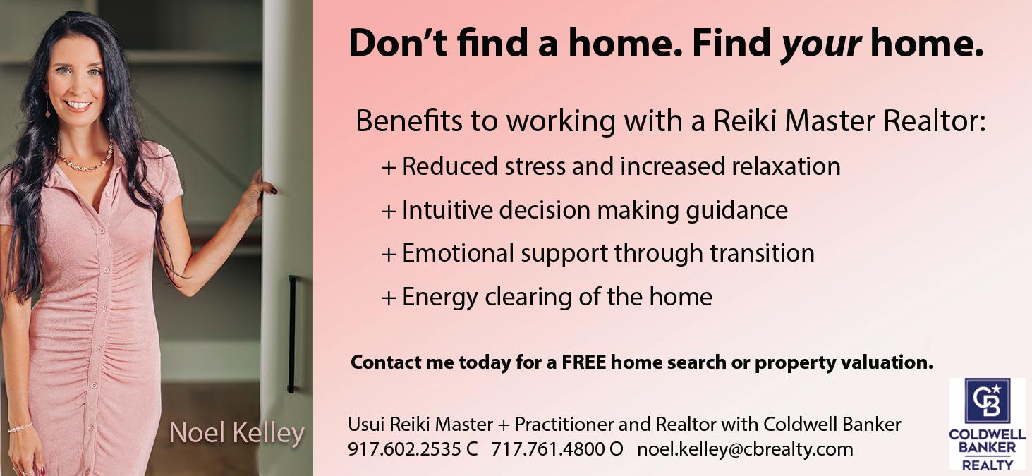 Noel is a Usui Reiki Master Practitioner and Realtor with Coldwell Banker Realty dedicated to helping you find home. More than just finding a house, it’s about finding a space that impacts your overall well-being. Connect and learn about her unique and harmonious approach to the home-buying experience. See ad, page 13. u