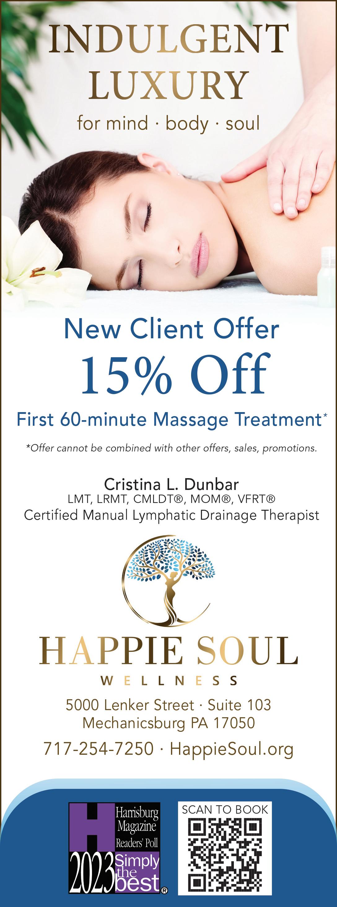 Location: 300 Corporate Center Dr., Ste. 102, Camp Hill. For more information, call 717-557-5846, email FairhavenHealing01@ gmail.com or visit Fairhaven-Healing.com. See listing, page 27.