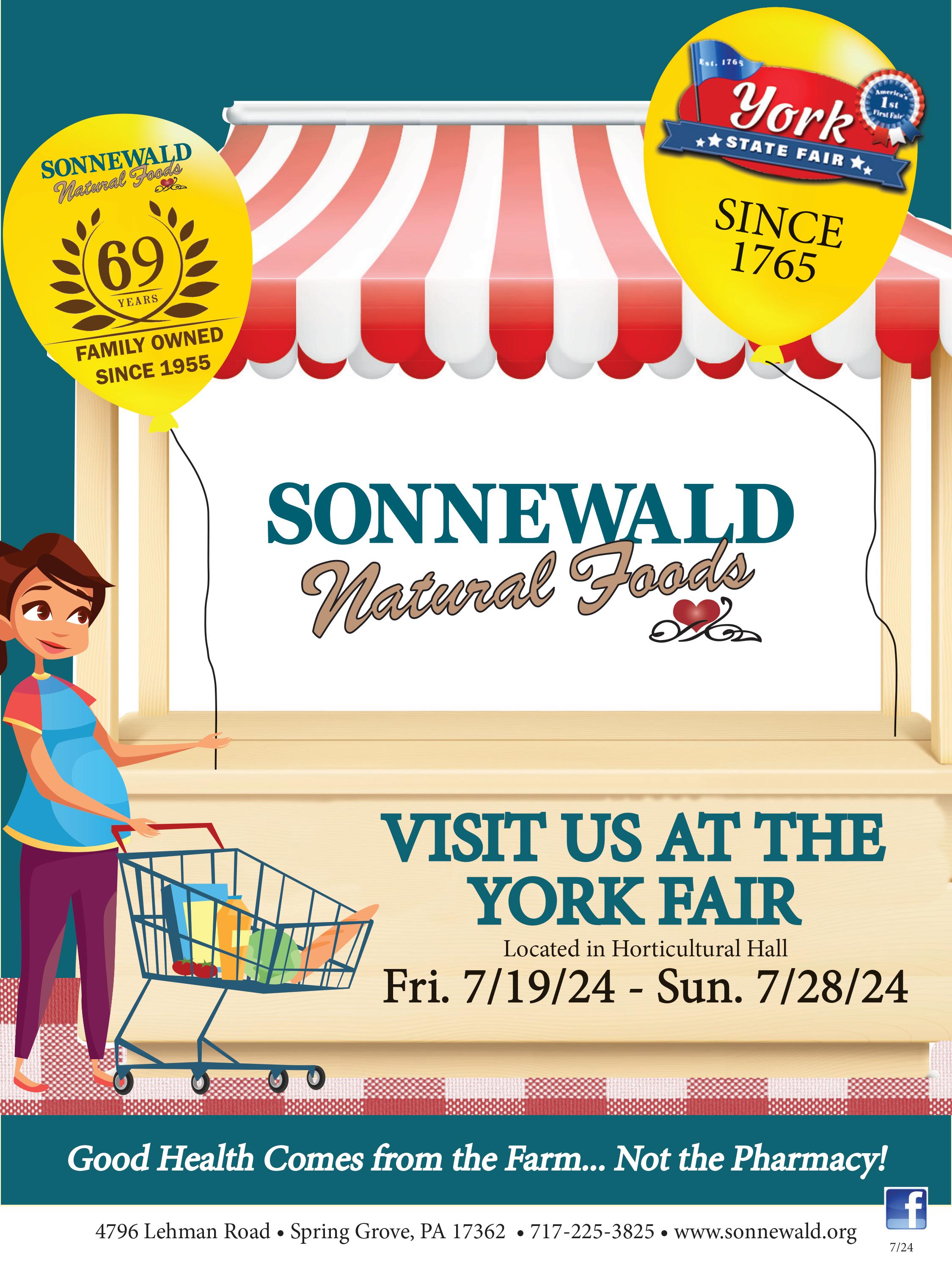 Good health comes from the farm... Not the Pharmacy! Sonnewald Natural Foods has 300+ bulk foods, organic produce, supplements, books and more, and has been in business for more than 60 years, serving Central PA and beyond. Follow us on Facebook for daily, weekly and monthly offers and special events See ad, back cover. u