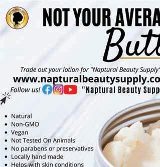 Naptural Beauty Supply was created to end the stigma around natural hair by empowering men and women to love themselves naturally. We do this by instilling confidence in our community and increasing convenience by having the tools and services in one place, such as hair and body butters, beard care and apparel. We are beauty supply with naturals in mind! See ad, page 23.