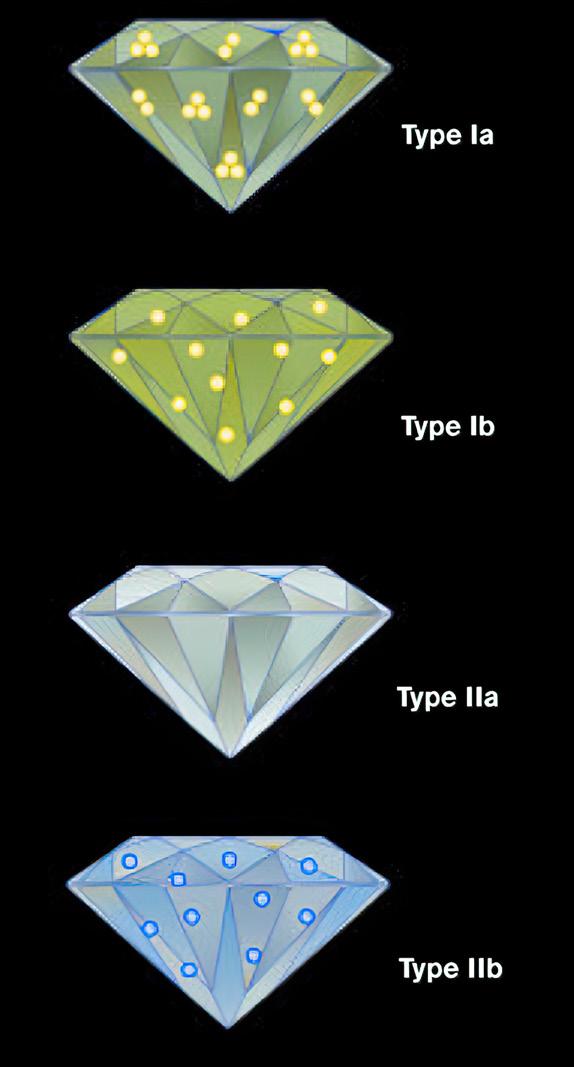 If nitrogen is present in measurable quantities, the diamond is Type I, which accounts for most of world production. If not, it’s Type II – much rarer and often exceptionally pure. Sub-types Ia, Ib, IIa, IIb are identified based on how those atoms are arranged or whether other elements are present. For instance, boron gives Type IIb diamonds their blue colour.