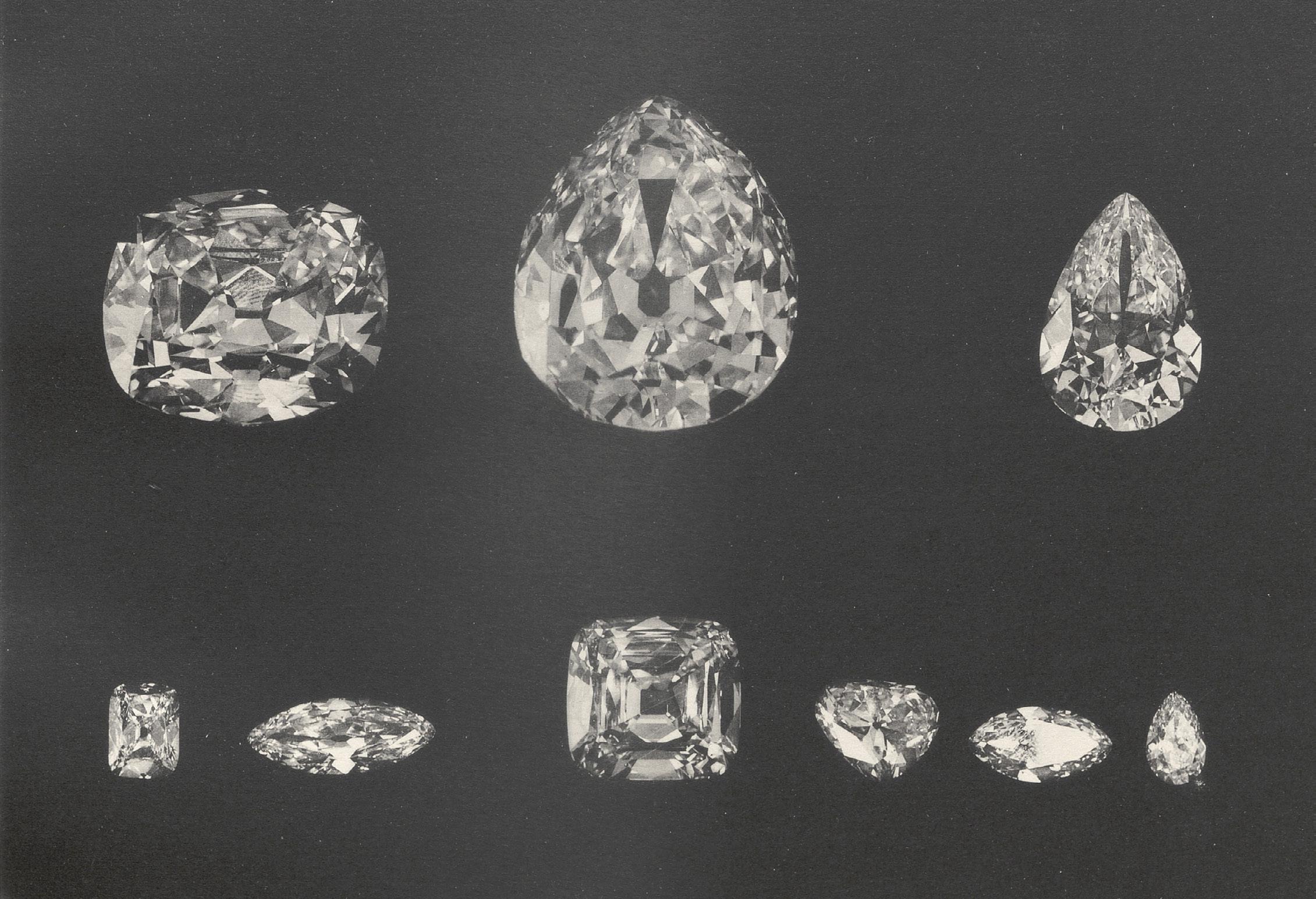 The Koh-i-Noor,37, 38 believed to have weighed 793 carats in its rough form, and the Great Mogul39 – thought to have been around 787 carats – still rank among the largest diamonds ever recorded. Today, the Koh-i-Noor, polished to 105.6 carats, forms part of the British Crown Jewels, while the Great Mogul is widely believed to have been recut into the 189.6-carat Orlov Diamond, which now resides in the Diamond Fund of the Moscow Kremlin.