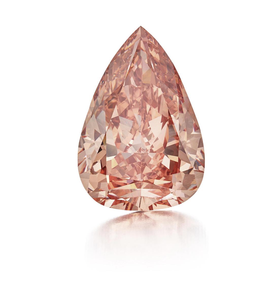 The Desert Rose, a 31.68-carat, pear-modified brilliant, the largest fancy vivid orangy pink diamond, VVS1 clarity, sold for $8.8 million at Sotheby’s inaugural Abu Dhabi Collectors’ Week in December 2025. Five bidders competed for the stone, which set a new auction record for a fancy orangy pink diamond.68