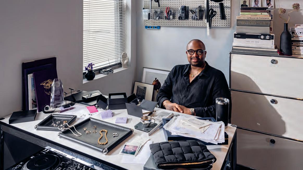 The grayscale palette of Bernard James’s office in Greenpoint, Brooklyn, might lead you to believe that his jewelry is austere and that he isn’t a fan of color. But this is not the case. "The pared-down aesthetic allows me to focus on shapes and lines," Bernard explains. "Plus, pops of color make me happier than a whole world of color." Take a closer look, and you’ll see the designer’s brand color in his purple lookbook and lavender Post-it notes. As for his collection, it’s filled with strong sculptural jewels and delicately detailed designs inspired by nature. The flowers of the famous Brooklyn Botanical Garden, near his childhood home, are a steady source of inspiration. Another is fungi. The mushrooms Bernard has spotted pushing their way through the sidewalks of the urban jungle are something of an obsession. Since he launched his line in 2020, Bernard’s thoughtful creations have steadily grown in popularity and have been worn by any number of celebrities, including Anok Yai, Lorde, and Questlove.