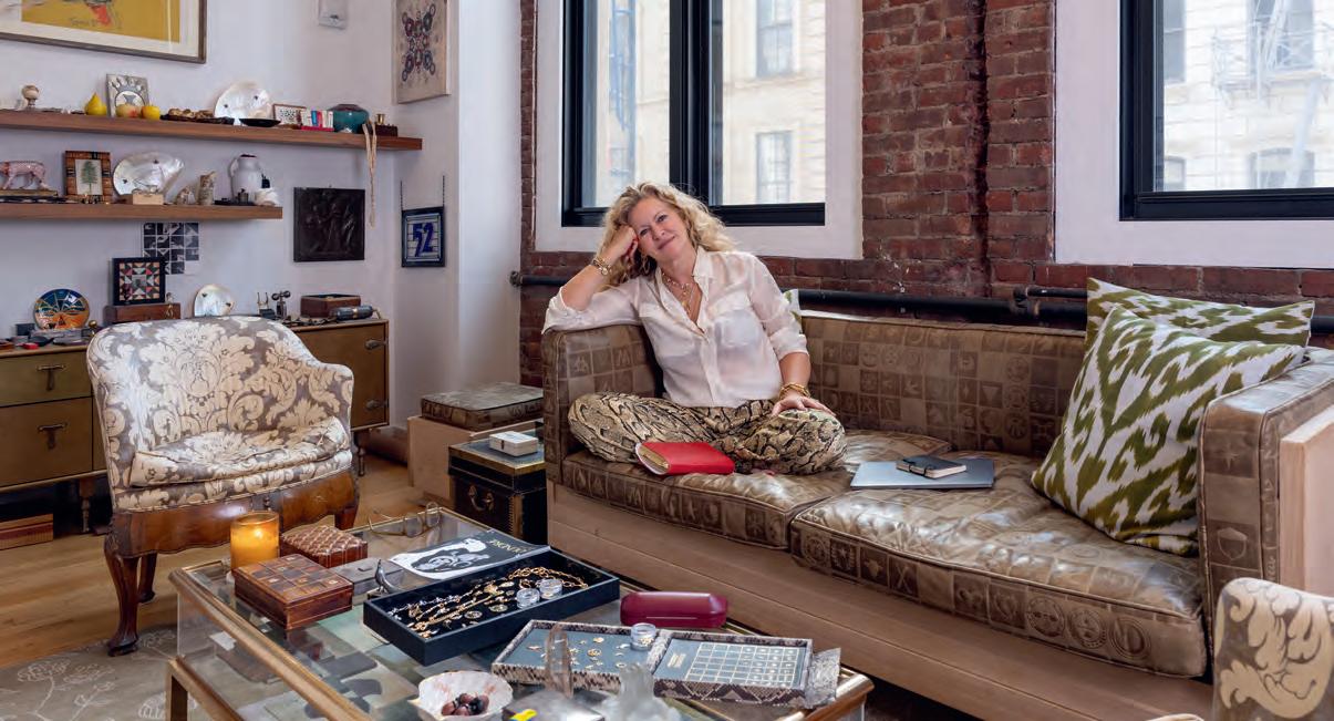 She set the relics on chunky oxidized gold chains, with antique diamonds, Tahitian pearls, and patinaed gold beads. But not all the artifacts are for sale; she couldn’t resist keeping some for her personal jewelry collection.