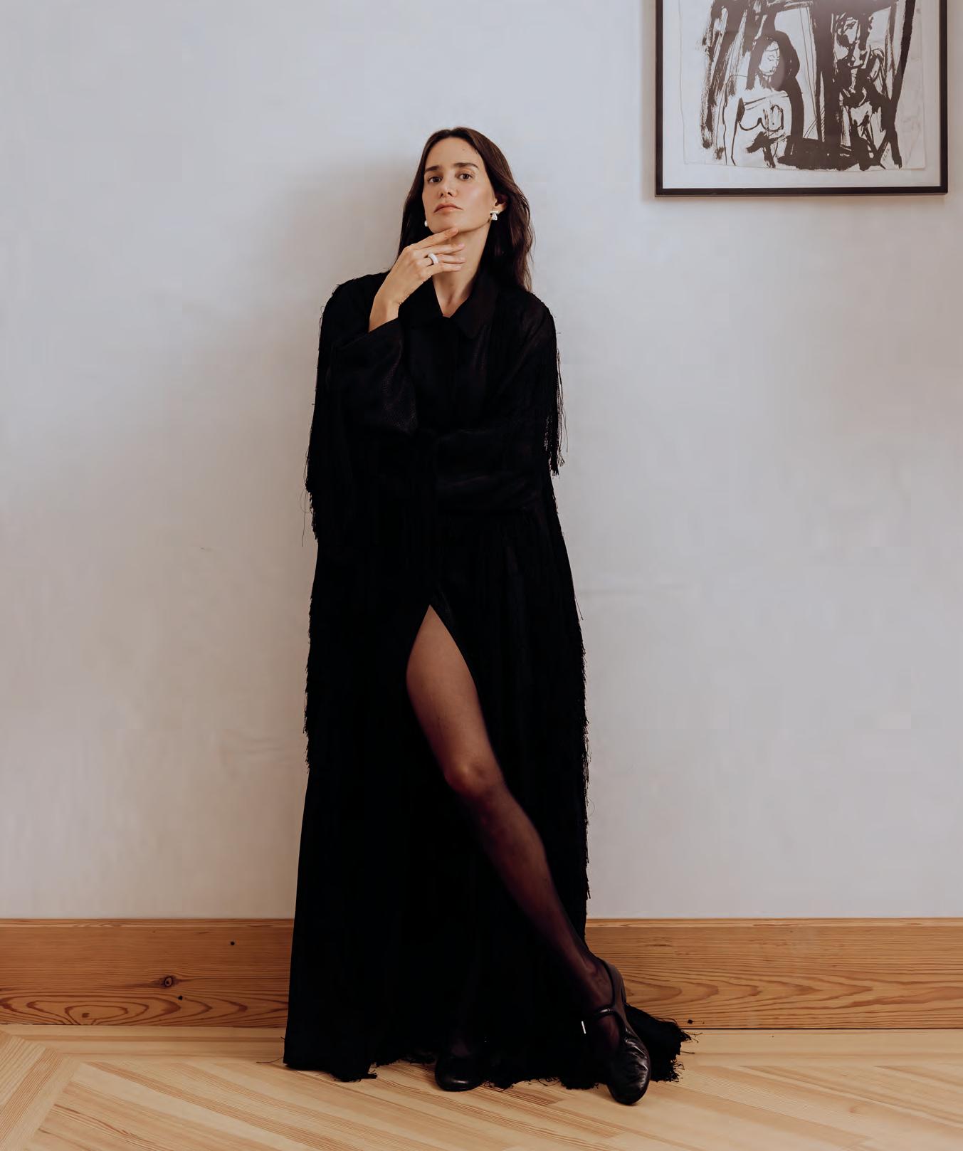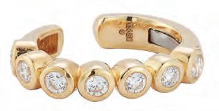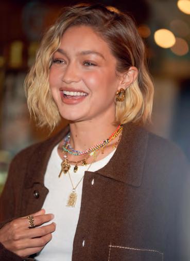 back, bohemian style that echoes through her jewelry designs and how she styles her pieces herself. “It looks great stacked, but it’s also easy to wear on its own. Sometimes I don’t even wear earrings—just a single ear cuff.”