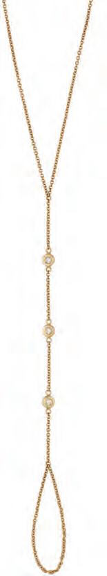 Consider Dezso’s Polki Diamond Coquito Charm on a neon cord, designed to be worn as either a bracelet or anklet. Dezso’s pieces channel an endless-summer energy and serve as a year-round reminder of warmer days. For a cool bohemian touch, add Jacquie Aiche’s Three Diamond Hand Chain to the mix.