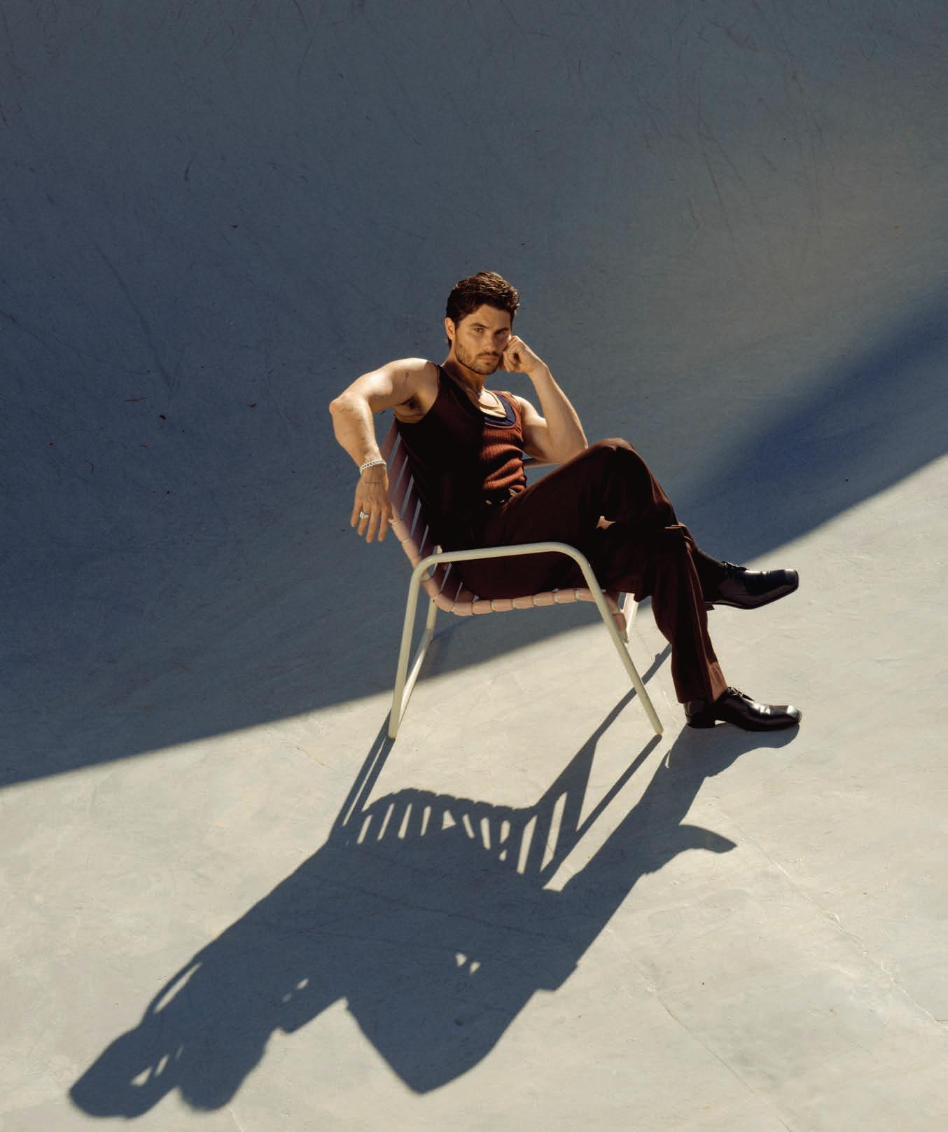 Chase Stokes wearing an Eva Fehren necklace, Uniform Object ring, and Zydo ring photographed by Ryan Pfluger.