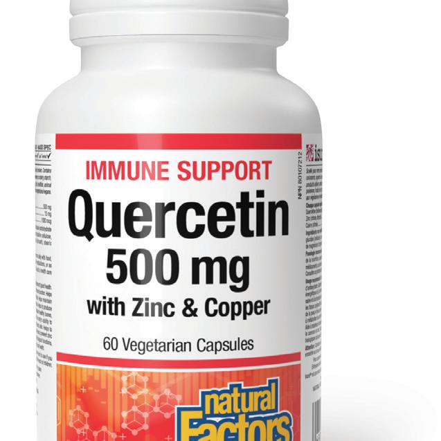 Emerging research suggests that some viruses may cause blood vessel damage, often in response to the body’s inflammatory response. This causes a great deal of stress to the immune system. The unique antioxidant e ect of quercetin supports healthy blood vessels by reducing the oxidative damage to vessel walls. Such protection even extends to the capillaries, which supply nutrients and oxygen to every cell in the body.