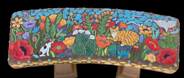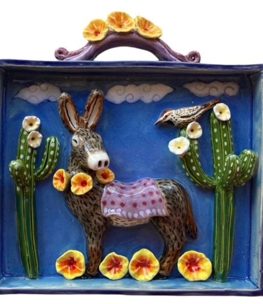 Local cover artist Lisa “LaLa” Agababian, born and raised in New York City, is mostly a self-taught ceramic artist currently creating purposeful art full-time in Tucson. Although her fascination with clay started at a very early age, it was decades later that this medium proved to be a lifesaver for her as well. Her ”Ceramic heART Wall Sculptures" are colorful expressions of her authentic, raw, naked, vulnerable… strength, as she experiences this fabulous, wondrous, and sometimes very scary, and painful, precious, human life. Although she continues to create fine, functional, whimsical wares, her Ceramic Heart Wall Sculptures give a true voice to the whole spectrum of being human and shines with more than a modicum of timelessness and humor as well.