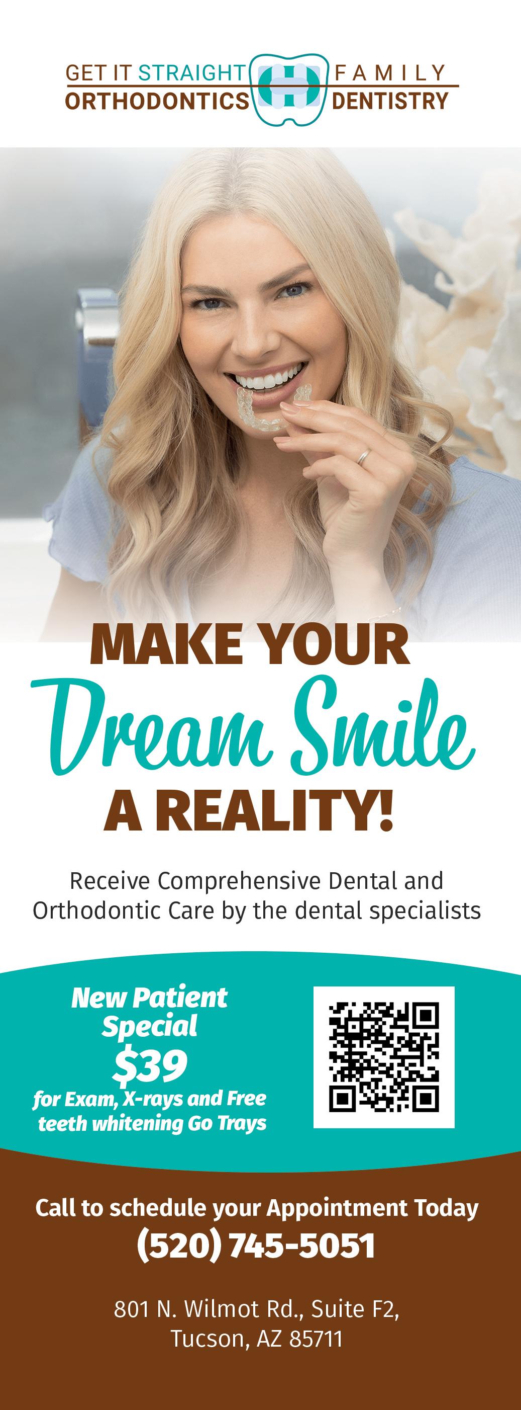 Comprehensive general dental and orthodontic care with compassion serving all ages. Braces/ Clear Aligner treatments for kids, teens and adults up to 70. TMJ therapy, appliances treating bruxism, grinding and clenching as well as Snore and sleep apnea appliance therapy. See ad, page 5.