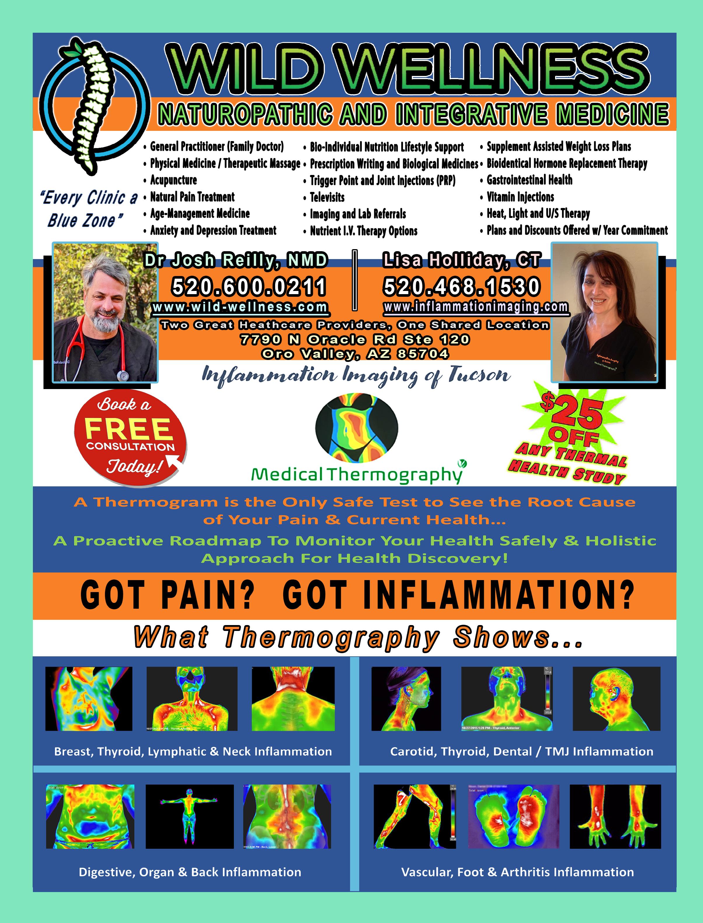 Medical Thermography and Heart Health –12-3pm. Wild Wellness Naturopathic/Integrative Medicine and Inflammation Imaging of Tucson will be Presenting: Medical Thermography and Heart Health, “Blue Zone” Nutrition, Longevity and more. No charge. Natural Grocers, 6320 N Oracle Rd, Oro Valley. Contact Lisa Holliday at 520-468-1530.