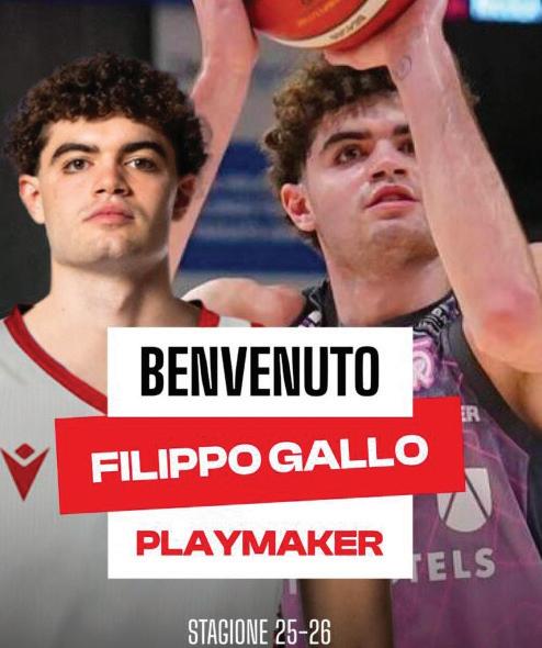 Altro nuovo acquisto ufficializzato il 15 luglio è il giovane e promettente play Filippo Gallo. Nato a Trieste nel 2004,194 centimetri per 82kg, dopo aver svolto parte del percorso di settore giovanile con l’Azzurra Basket Trieste,