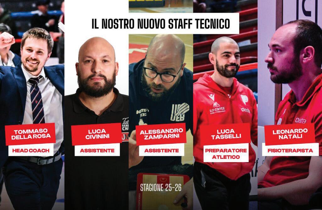 Definito anche quello che sarà lo staff tecnico per la stagione di A2 2025/26. A fianco di coach Tommaso Della Rosa ci saranno come assistenti Luca Civinini e Alessandro Zamparini, mentre sono riconfermati il preparatore atletico Luca Tasselli e il fisioterapista Leonardo Natali Questa la presentazione dei vari ruoli.