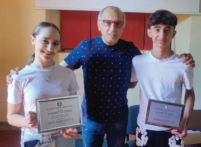 I vincitori del premio Sampette 2025 sono Lucia Andreotti classe 3F e Tommaso Betti classe 3D. Il premio è stato istituito nell’a/s 1999/2000 dal professor Mario Tempesta (nella foto insieme ai due vincitori di questa edizione), docente di Educazione Fisica presso l’ICS B.da Montemagno per ben 40 anni (Sampette è lo pseudonimo anagrammato proprio di Tempesta).