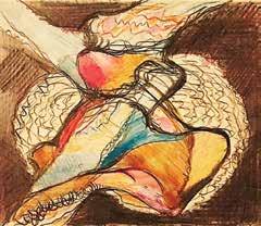 Nella sala successiva esplodono i colori del teatro: danzatori, ballerine, acrobati e un piccolo Giocoliere (4) in bronzo ci ricordano l’attrazione dell’artista per lo spettacolo nelle sue molteplici espressioni.