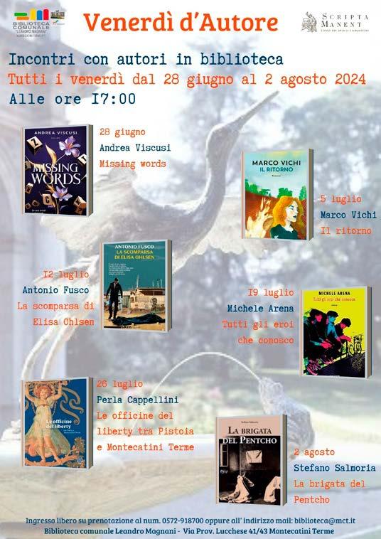 Si è partiti a giugno, con il ciclo Le vacanze con i nonni, racconti di ieri di oggi (laboratori e incontri per bambini dai 6 agli 11 anni) in Biblioteca San Giorgio ogni mercoledì e venerdì mattina, a cura degli Amici della San Giorgio; la programmazione del Cinema sotto le stelle a cura di Mabuse Cinema, nell’Arena di Porta al Borgo dal 21 giugno; gli Europei a Montu , la proiezione delle partite degli Europei 2024 nel Parco di Monteoliveto a cura dell’Associazione Amici di Montuliveto; i tornei sportivi del Palio dei Rioni , che si sfideranno su vari campi da gioco in 5 discipline (basket, calcio, hockey, padel e pallavolo).