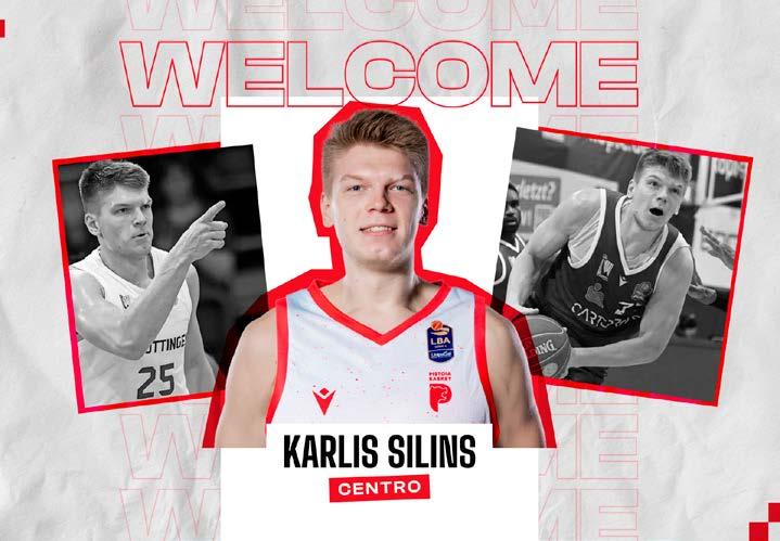 continuativa, ha vestito la maglia dei Winthrop Eagles nel campionato Ncaa. Rientrato da un brutto infortunio, nella scorsa stagione in in 17 match disputati, per otto volte va in doppia cifra e chiude con 8.8 punti col 53,5% da due e il 47,2% da tre. Avendo già vestito la maglia della Nazionale italiana Under16 ed essendo stato convocato anche a far parte della Sperimentale Under23, il giocatore ha ottenuto la formazione italiana. Un prospetto molto interessante con grandi margini di crescita, che la società ha ingaggiato con un contratto biennale. A seguire, la compagine biancorossa ha sistemato il reparto dei lunghi tesserando l’ala/pivot di nazionalità lettone Karlis Silins. Nato a Riga il 22 luglio 1997, 211 cm per 112kg, ha mosso i primi passi in patria a partire dalla stagione 2015/16 con i Barons Riga per poi iniziare la sua avventura al college, prima con gli Ole Miss Rebels e poi, per tre stagioni, con i Florida Atlantic Owls dove, in maniera costante, è cresciuto anno dopo anno passando da 6.5 punti in 17’ di media a 10.5 punti con 22’ di utilizzo nell’annata 2020/21 in 23 partite giocate.
