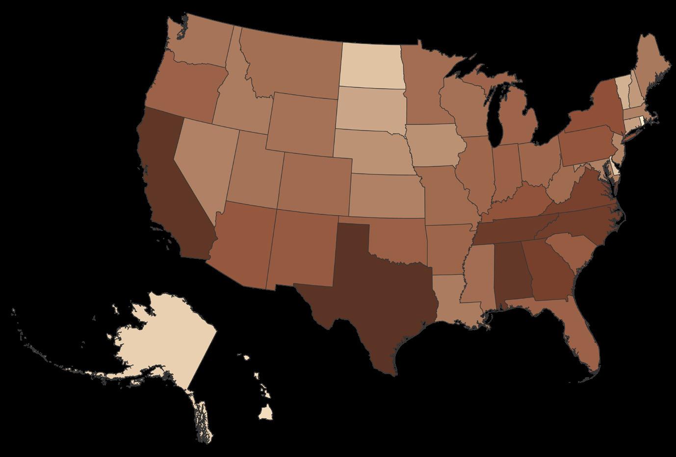 As with patterns in species diversity, patterns in ecosystem diversity vary based on geography. Our data show that more U.S. ecosystems are found in topographically diverse regions (e.g., mountains, coastal areas) or in large and biogeographically diverse states such as Texas and California.19