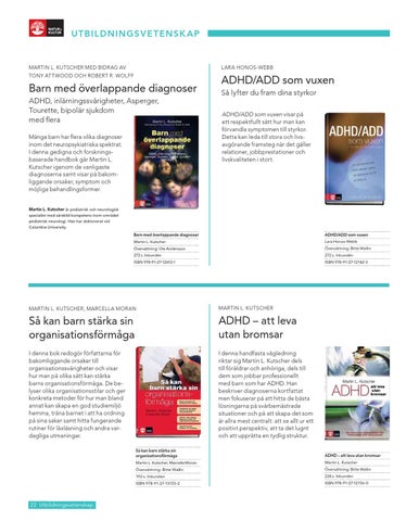 Barn med överlappande diagnoser ADHD, inlärningssvårigheter, Asperger, Tourette, bipolär sjukdom med flera Många barn har flera olika diagnoser inom det neuropsykiatriska spektrat. I denna gedigna och forskningsbaserade handbok går Martin L. Kutscher igenom de vanligaste diagnoserna samt visar på bakomliggande orsaker, symptom och möjliga behandlingsformer.
