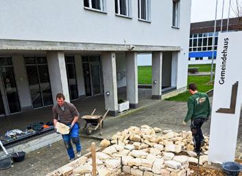 Unter den Akteuren befinden sich Natalie Fluri und Johann Allemann als Vertreter der Gemeinde, der Naturexperte Josef Meyer sowie Patrick Zellweger vom Naturpark. Die Arbeitsgruppe hat sich zunächst den Grünflächen in Herbetswil gewidmet: Welche Bereiche sind bereits naturnah gestaltet und wo birgt die Gemeinde noch ungenutztes Potenzial? Das Team hat sich für den Anfang entschieden, die Rabatte vor dem Gemeindehaus naturnah umzugestalten. Josef Meyer hat eine Trockensteinmauer geplant, die von Wildstauden umgeben wird und in Form des Gemeindewappens gestaltet ist. Das Vorhaben wurde am Tag der Natur mit Unterstützung vieler