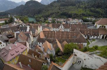 König Max II., Vater des bayerischen Märchenkönigs Ludwig II., entdeckte während eines Ausflugs in Hohenschwangau die Ruinen einer Ritterburg und ließ im 19. Jh. Schloss Hohenschwangau erbauen, welches daraufhin zum Sommersitz der Wittelsbacher Familie wurde. Bayerns Märchenkönig Ludwig II. verbrachte hier seine glückliche Kindheit als Kronprinz und beobachtete später als König den Fortschritt der Bauarbeiten am wenige Meter gegenüberliegenden Schloss Neuschwanstein.