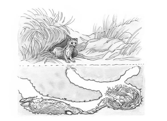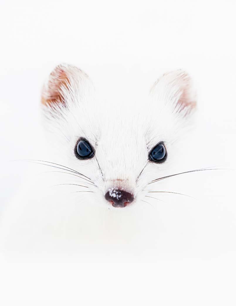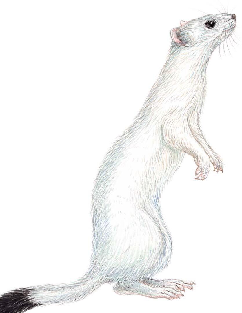 En daar verdwijnt de hermelijn weer, de sneeuw in.