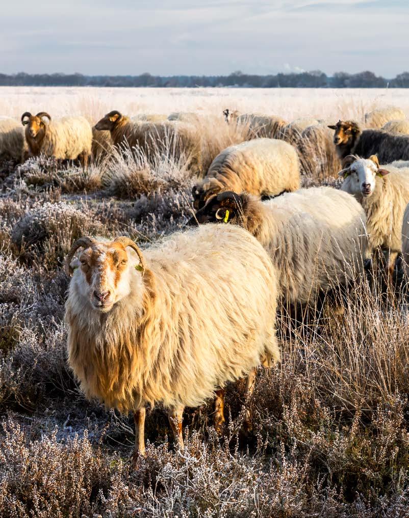 heidevlakte open en gevarieerd blijft. Beide kuddes hebben hun eigen schaapskooi aan de rand van het gebied en werken volgens een uitgekiend begrazingsplan dat ruim duizend hectare bestrijkt. Dat lukt aardig, want schapen kunnen enorm veel vegetatie wegwerken. Bij voorkeur de sappigste delen van planten, waaronder jonge heide, gras en kruiden, maar ook voedselarme grassen, dorre heide of opkomende boompjes worden gegeten. Toch kunnen de wollige viervoeters de vergrassing nauwelijks bijbenen.